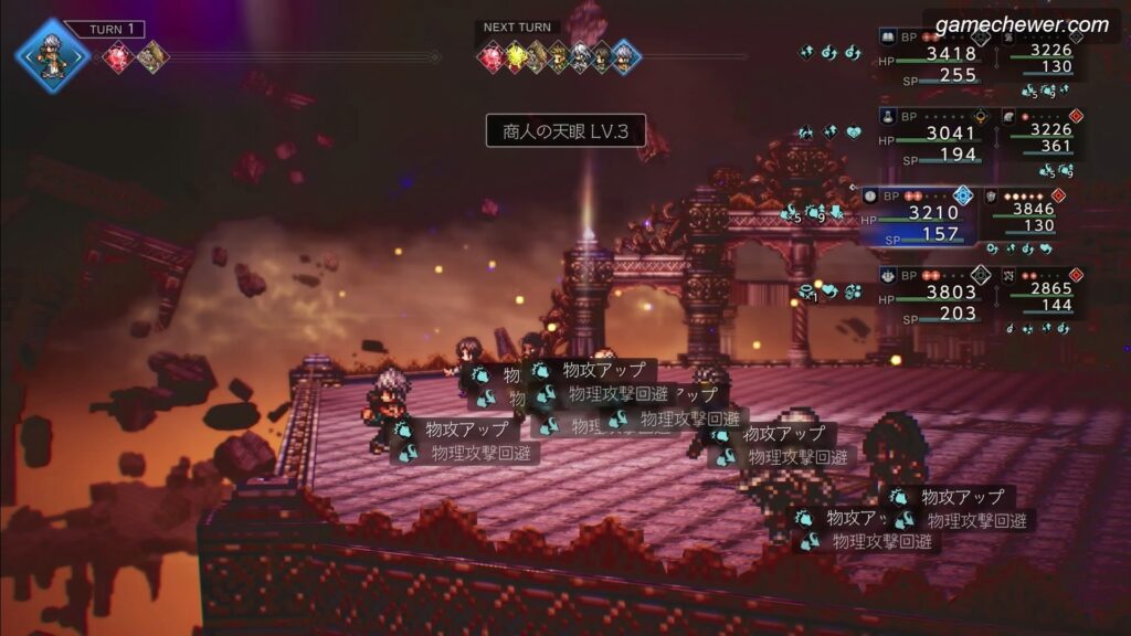 天下無双サザントス 裏ボス戦、なんとか勝てた。 ストーリークリア直後に、当時のデッキ(脱線①で紹介した守備重視のデッキ)で戦ったときは、「回復限界突破」で前列…